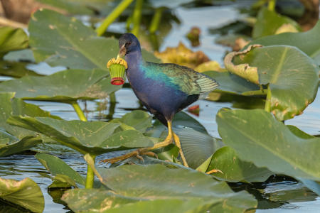 Purple Galllinule with a Flower
