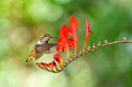 Hummingbird with red flower